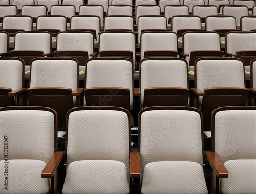 © lina, Fototapeta premium rows of seats with dark brown armrests in an auditorium.