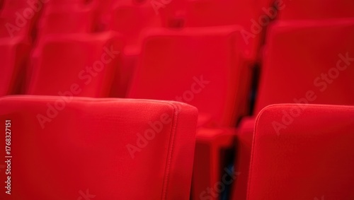 © Aliaksandr Barouski, Naklejka premium Rows of vibrant red theater seats create a striking visual impact