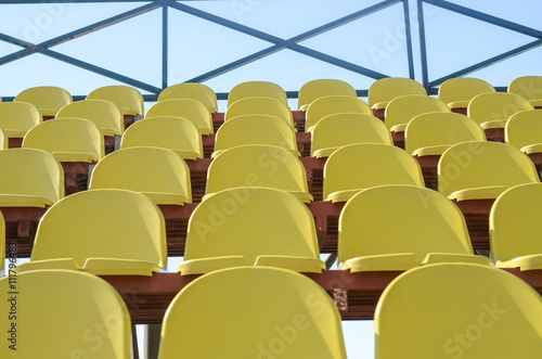 Fototapeta premium Rows of yellow plastic seats in the stadium