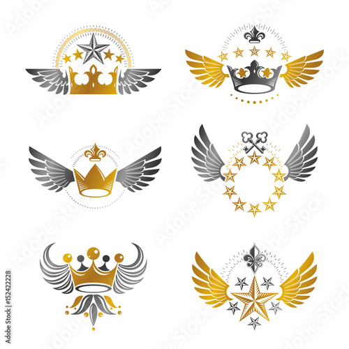 Obraz premium Royal Crowns and Vintage Stars emblems set. Heraldic vector design elements...