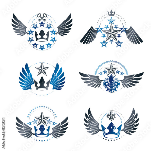 Obraz premium Royal Crowns and Vintage Stars emblems set. Heraldic vector design elements...