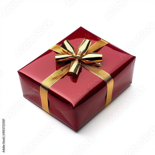© RYUJIN Studio, Obraz premium Royal Elegance: A luxurious red gift box adorned with a golden silk ribbon