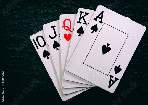 © CreativeSuburb, Obraz premium Royal flash without a single card on a black table.