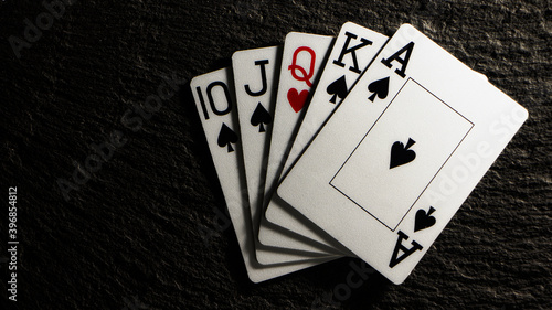 © CreativeSuburb, Obraz premium Royal flash without a single card on a black table.