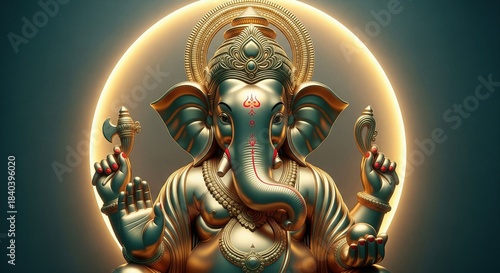 Fototapeta premium Royal Ganesha in Gold and Teal. Luxury 4K Devotional Art.