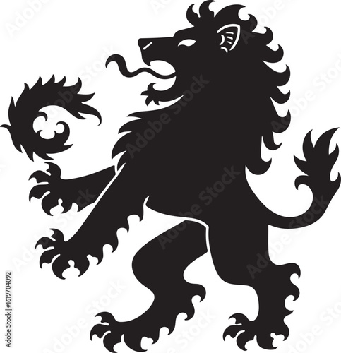 © Rofiqul, Fototapeta premium Royal Heraldic Lion Crest Silhouette Bundle