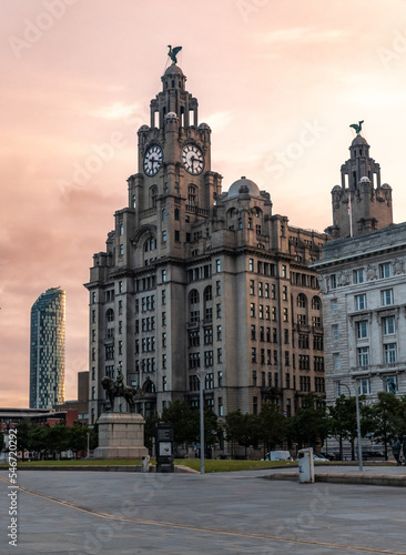 Naklejka premium Royal Liver Building in Liverpool, image captured at sunrise in the city...