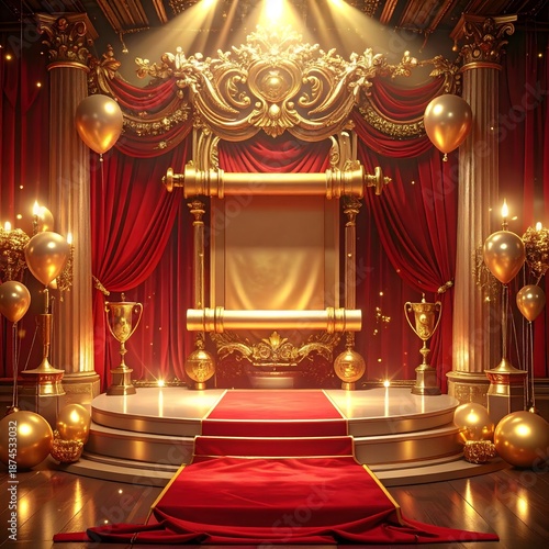 Naklejka premium Royal luxury event stage with red drapery high resolution image