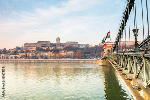 © jon_chica, Fototapeta premium royal palace views from chain bridge, budapest