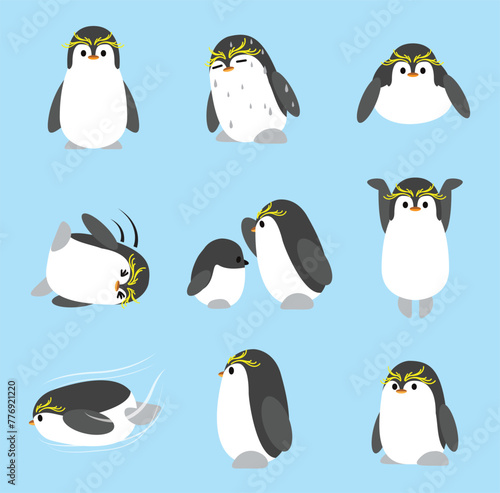 Obraz premium Royal Penguin Cute Set Chibi Cartoon Character Vector