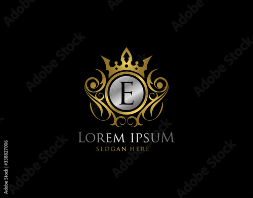 Fototapeta premium Royal Queen E Letter Gold Logo, Golden E Classic Crown.