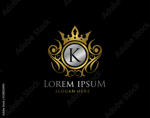 Fototapeta premium Royal Queen K Letter Gold Logo, Golden K Classic Crown.