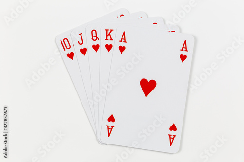 © Alex White, Obraz premium Royal straight flush in hearts, playing cards isolated on white background