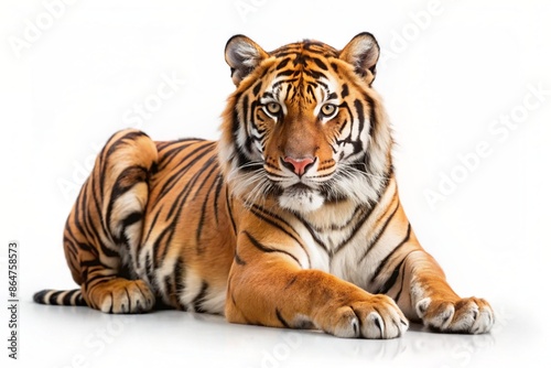 © mamo studios, Naklejka premium royal tiger (P. t. corbetti) isolated on white background clipping path included. The tiger is staring at its prey. Hunter concept.