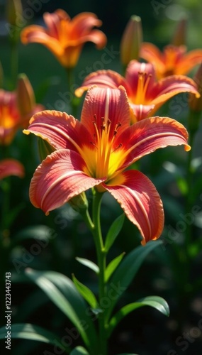 © Anulak, Fototapeta premium Royal Trinity lily in a garden with other flowers, flowers, lily