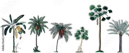 © ruskpp, Obraz premium Różni typ drzewka palmowe na białym tle.