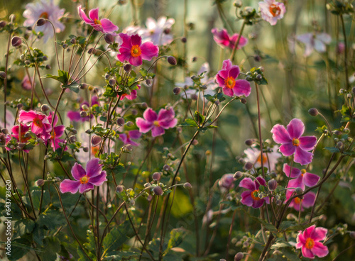 © mycatherina, Fototapeta premium Różowe kwiaty Zawilców japońskich