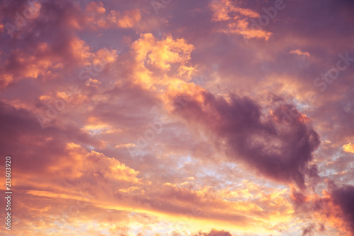 Obraz premium Różowozłote niebo zachód słońca z chmurami