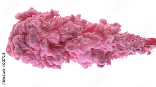 © peefay, Naklejka premium Różowy atrament spadł do wody na białym tle