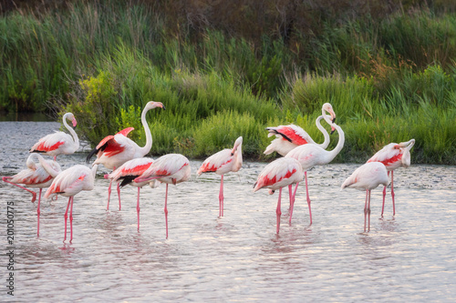 © larauhryn, Naklejka premium Różowy flaming, dzikie ptaki, park ornitologiczny Pont de Gau, Camargue, południowa Francja