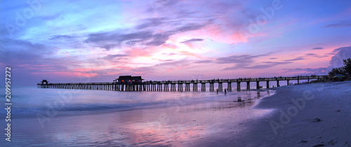 © SailingAway, Fototapeta premium Różowy i fioletowy zachód słońca nad Molo w Neapolu