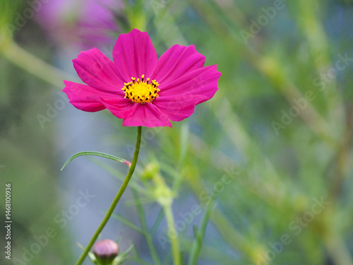 © Agnieszka , Fototapeta premium różowy kwiat kosmos na zielonym tle cosmos flower