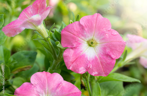 Naklejka premium Różowy kwiat petunii w ogrodzie