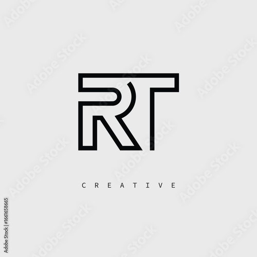 © Mansura, Obraz premium RT Creative Letter Logo – Minimal Line Monogram in Black Outline for Modern Branding Identity Design.