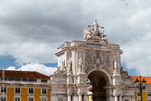 © Wirestock, Fototapeta premium Rua Augusta Arch in Lisbon under a cloudy sky.