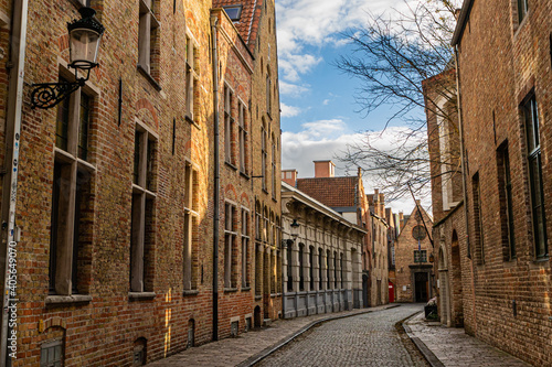 Fototapeta premium Rua charmosa na cidade medieval de Bruges, Bélgica