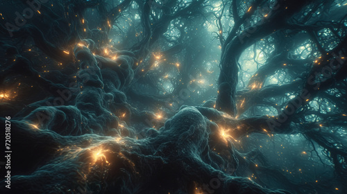 Obraz premium Rubbed lightning texture many lightning branches that create a complex...