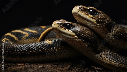 © claudunia, Obraz premium Rubber Boa snake illustration, black background