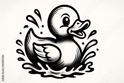 Fototapeta premium Rubber Duck Swimming Cartoon Illustration