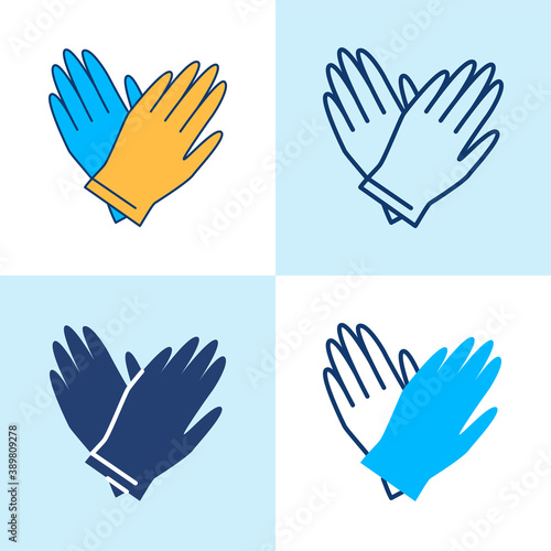 Fototapeta premium Rubber gloves pair icon set in line style