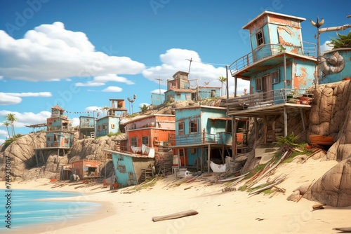 Obraz premium Rubbish beach village. Marine nature. Generate Ai