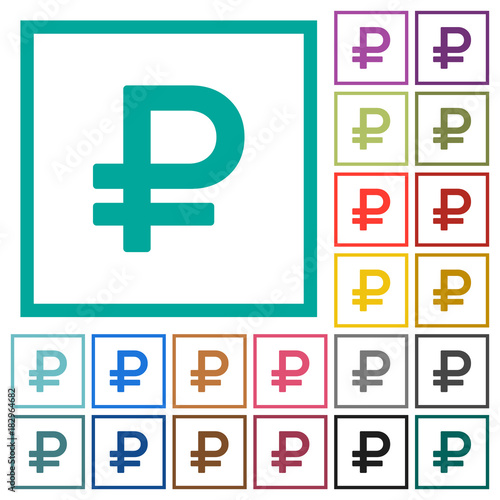 © botond1977, Obraz premium Ruble sign flat color icons with quadrant frames