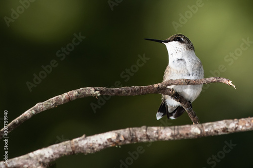 © rck, Obraz premium Ruby Throated Hummingbird Perched Delicately on a Slender Tree Branch