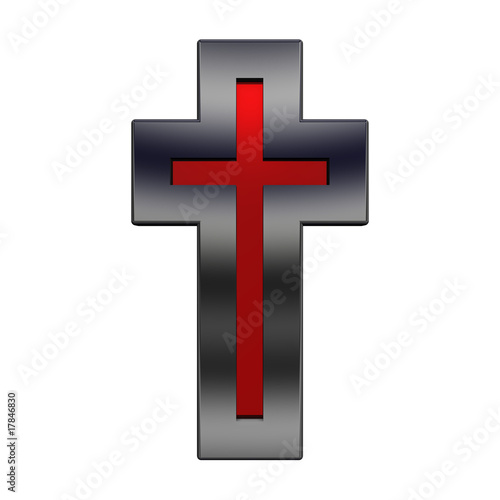 © Piotr Pawinski, Obraz premium Ruby with shiny black frame Christian cross isolated on white.