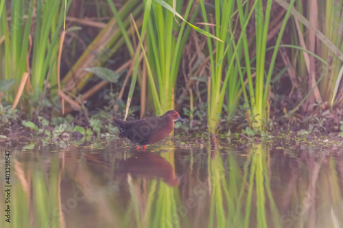 © Dipankar'Photography, Fototapeta premium Ruddy-breasted crake (Zapornia fusca)-habitat shot at New Town, Kolkata, India.