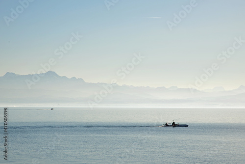 Obraz premium Ruderboote auf dem dunstigen Bodensee