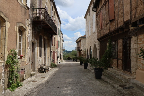 © ERIC, Fototapeta premium Rue bordée de maisons typiques dans le village, village de Monflanquin, département du Lot et Garonne, France
