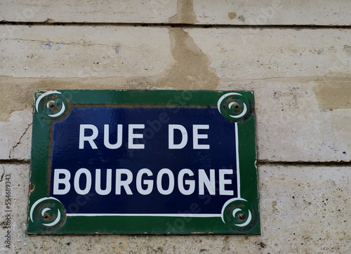 Obraz premium Rue de Bourgogne. Plaque de nom de rue. Paris.