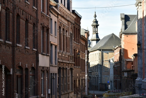 Fototapeta premium Rue typique aux maisons traditionnelles ouvrières au centre historique de Thuin en Hainaut