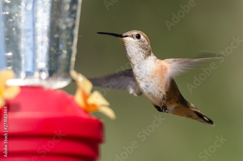 © rck, Obraz premium Rufous Hummingbird Arriving at the Feeder for a Meal
