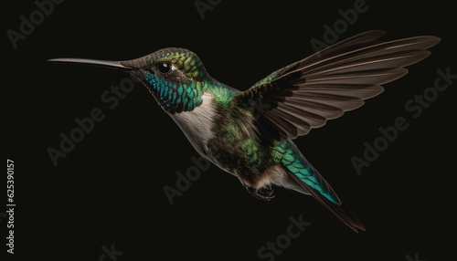 Obraz premium Rufous hummingbird hovering mid air, spreading iridescent wings in motion generated by AI