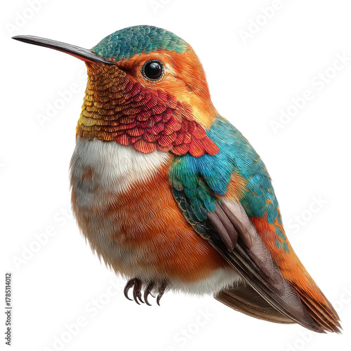 © SaroStock, Fototapeta premium Rufous hummingbird spreads its wings in a transparent png, ideal for design stock, the vibrant colors of plumage are clearly visible and makes it visually appealing