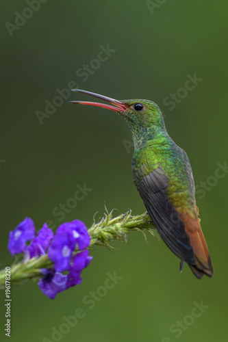 Fototapeta premium Rufous-tailed Hummingbird - Amazilia tzacatl, beautiful colorful small...