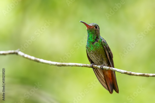 Fototapeta premium Rufous-tailed Hummingbird - Amazilia tzacatl, beautiful colorful small...