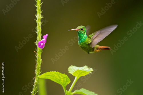 Fototapeta premium Rufous-tailed hummingbird (Amazilia tzacatl) is a medium-sized hummingbird...