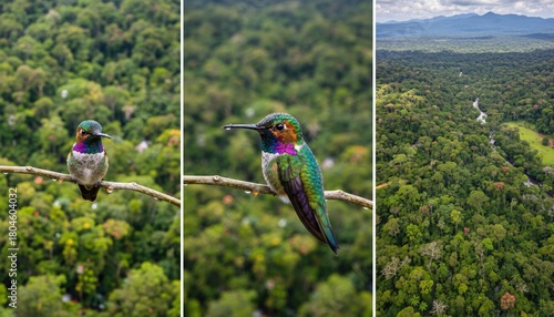 Obraz premium Rufous tailed Hummingbird Perched on Branch in Lush Rainforest Colorful Bird...